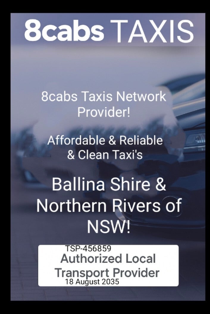 Our 8cabs Taxis is significantly reliable and on time to all booking and super quick to customers when book from 8cabs Taxis in Ballina Shire & Northern Rivers of NSW.